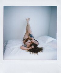 A polaroid-only boudoir session with vintage vibes. No digital files, just instant prints that feel nostalgic, discreet, and a little spicy — the perfect gift for keeping things fun yet under wraps.